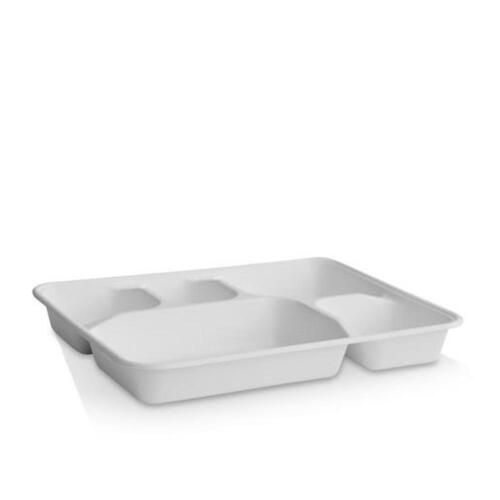 Sugarcane Tray 5 Compartment 280x230x35mm pkt/50 (SKU: BT-SCTR5-W_PKT) - Option : Pack